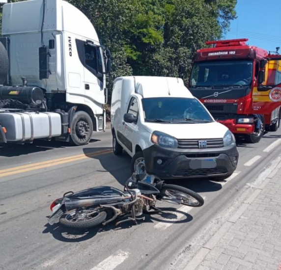 Uma colisão entre um carro e uma moto resultou em um motociclista de 26 anos ferido na tarde desta terça-feira, dia 26, na SC-108, localizada no Centro de Urussanga. O incidente aconteceu por volta das 14h20, e a vítima foi prontamente socorrida pelo Corpo de Bombeiros.