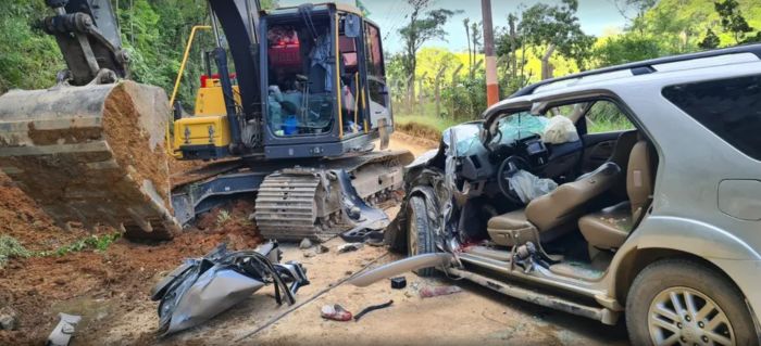 Não foi informada a relação entre os ocupantes do carro. A retroescavadeira, que foi atingida na traseira pelo carro, estava parada na beira da pista em função de obras na região.