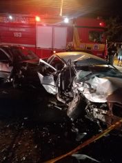 Os dois veículos tiveram perda total com o forte impacto que resultou na morte de duas pessoas. Foto: PM Um acidente no fim da tarde de ontem terminou com duas mortes na SC-350, em Ituporanga. O fato aconteceu no KM 380 da rodovia, por volta das 18h, no bairro Cerro Negro.