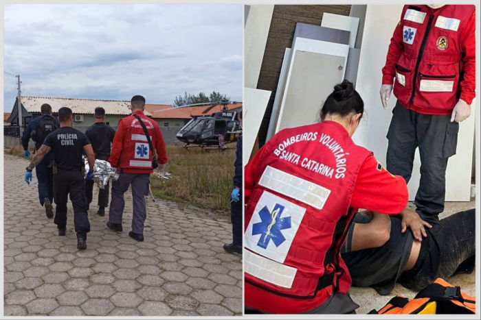 Dois homens ficaram feridos em quedas de telhados enquanto realizavam reparos, em ocorrências específicas atendidas pelos Bombeiros Voluntários na região Sul de Santa Catarina.