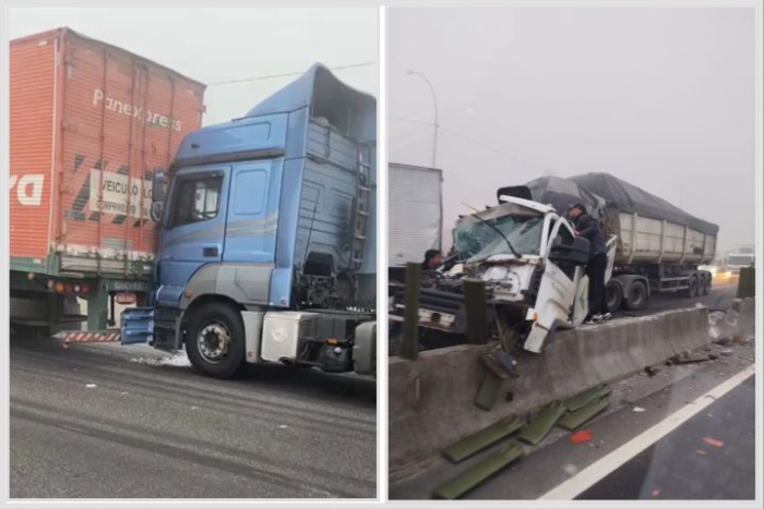 Acidente aconteceu na manhã desta terça-feira (15) em meio a forte neblina; trânsito ficou totalmente bloqueado no sentido sul da rodovia