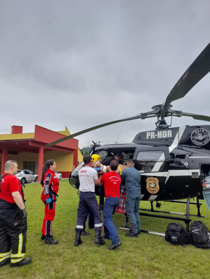 Posteriormente, a vítima foi conduzida até o quartel de Lauro Muller, onde a equipe do SARASUL aguardava para o transporte adicional, garantindo assim que recebesse a assistência necessária com segurança.