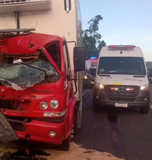 Uma colisão entre dois caminhões na BR-101, precisamente no KM 362 em Sangão, foi marcada por uma tragédia na tarde de segunda-feira, dia 18, por volta das 17h15. O acidente levou à morte de um homem de 36 anos, que era caroneiro de um caminhão Mercedes Benz Accelo, com placas de Içara. Este veículo colidiu na traseira de um Daf XF105.