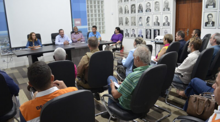 A reunião de trabalho foi encaminhada nesta terça-feira (11) por integrantes do Gabinete de Gestão Integrada (GGI), em encontro realizado na Sala de Atos da prefeitura. Participaram do encontro o prefeito em exercício Gelson Bento, secretários de diversas pastas e representantes da Polícia Militar, Guarda Municipal, Polícia Civil, Corpo de Bombeiros, Defesa Civil do Estado, Câmara de Dirigentes Lojistas (CDL) e Conselho Tutelar.