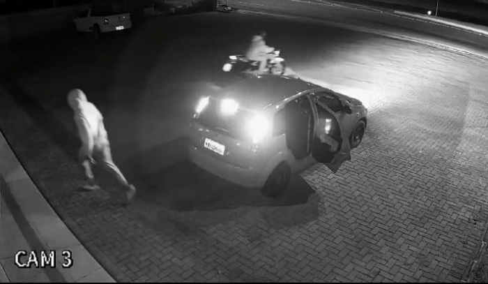 Segundo relatos dos militares, as filmagens registraram um Ford Fiesta vermelho estacionando em frente ao estabelecimento. Enquanto um dos indivíduos permaneceu no carro, outros quatro realizaram o arrombamento e o roubo das motocicletas.