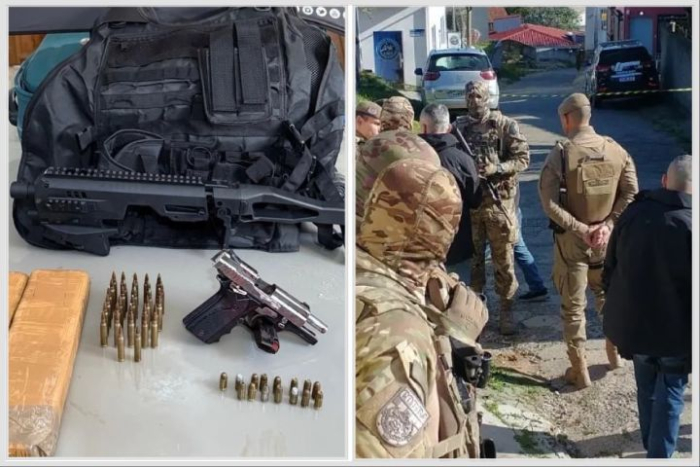 Durante a ação, os policiais apreenderam uma pistola calibre 380 com numeração suprimida, 15 munições calibre 380, 32 munições de fuzil 5,56x45mm, um kit Roni (acessório que aumenta a estabilidade da arma), uma capa de colete balístico e aproximadamente dois quilos de maconha.