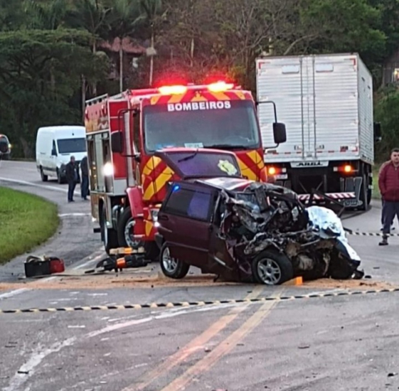 Acidente matou homem de 24 anos neste sábado (17), na BR-470 em Apiúna – Foto: Bombeiros Voluntários da União/Divulgação/ND Um homem de 24 anos perdeu a vida em um acidente grave envolvendo um carro e um caminhão na BR-470, em Apiúna, no Vale do Itajaí. O acidente ocorreu por volta das 05h30 da manhã deste sábado (17), conforme relatado pelas equipes dos Bombeiros Voluntários de Apiúna, Ascurra e Rodeio, e pela Polícia Rodoviária Federal (PRF).