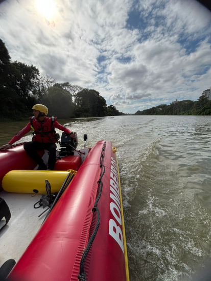 Bombeiros realizam buscas subaquáticas após relato de que vítima acenou por ajuda e submergiu; operações continuam nesta segunda-feira (9)