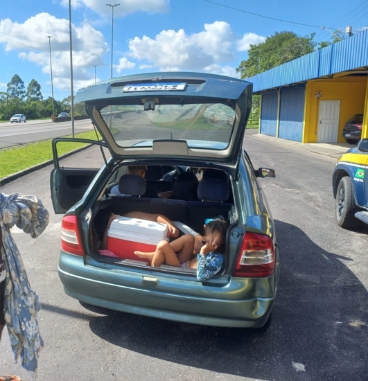 Neste domingo (5), policiais rodoviários federais flagraram uma situação preocupante na BR-101, em Paulo Lopes. Um homem foi surpreendido transportando dois de seus filhos, de 8 e 11 anos, no porta-malas do automóvel.
