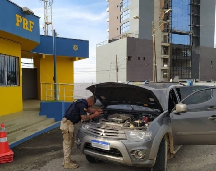 Durante a fiscalização, os agentes perceberam diversas adulterações nos sinais identificadores. A picape tinha registro de roubo em Curitiba/PR mas portava placas falsas, de outra L200, de mesmas características.