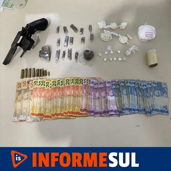 Junto as drogas, foi localizado R$489,00 em dinheiro e um revólver calibre .38 com 4 munições intactas e 4 munições não deflagradas do mesmo calibre, também foi localizado outras 2 munições deflagradas de outros calibres.