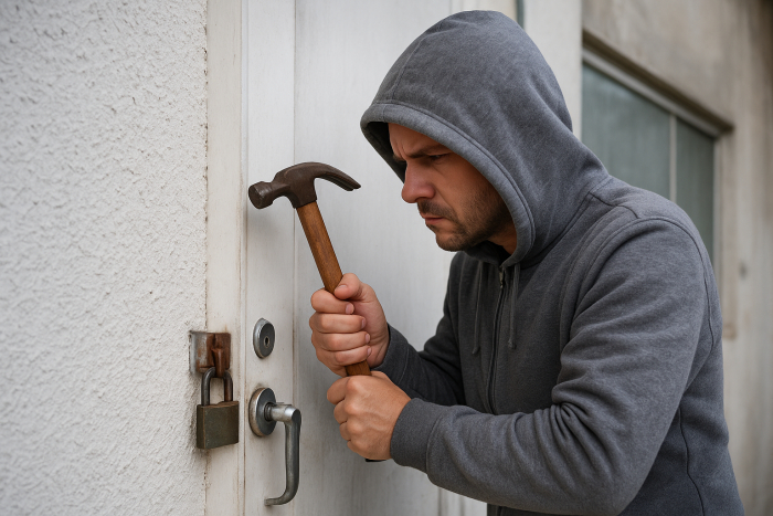 De acordo com a Polícia Militar, a moradora acordou ao ouvir barulhos na frente de sua casa e, ao verificar, encontrou o suspeito com um martelo nas mãos tentando quebrar o cadeado da porta de entrada. Um dos cadeados já havia sido arrombado, e ele tentava romper o segundo quando foi flagrado.