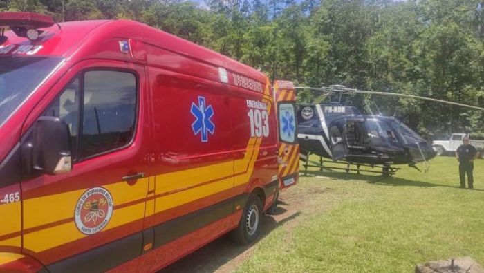 Após imobilização, foi o homem foi transportado até um campo próximo do local, onde a equipe do Sarasul já estava aguardando para realizar a transferência até o hospital de Criciúma.