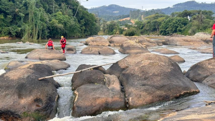Ao chegar ao local, os bombeiros confirmaram que o homem havia entrado no rio com o objetivo de resgatar o animal, mas o nível da água subiu repentinamente, impedindo o retorno à margem. Ele acabou ficando ilhado em cima de uma pedra, cercado por uma correnteza intensa.