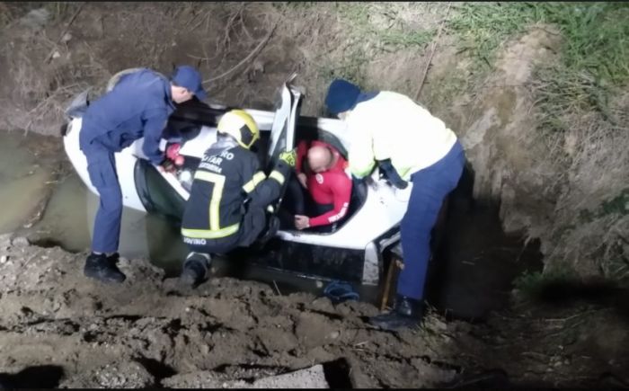 Os bombeiros encontraram o carro com a parte do condutor para dentro da vala, quem dirigia, que não foi identificado, já estava sem os sinais vitais.