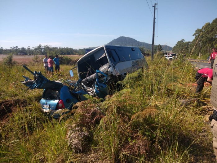 Um homem morreu vitima de uma colisão frontal na manhã desta quinta-feira, dia 2, na rodovia Governador Jorge Lacerda, acesso Sul de Criciúma. Ele estava em um veículo Renault Clio que chocou-se contra um ônibus que transportava universitários próximo a empresa Braspress (apenas referência).