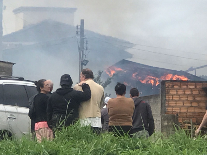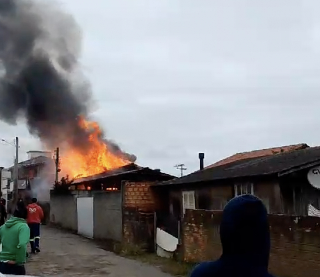 Um incêndio de grandes proporções destruiu a casa de uma família em Imbituba, deixando a residência completamente consumida pelas chamas. O incidente ocorreu entre os bairros Vila Nova e Campo de Aviação.