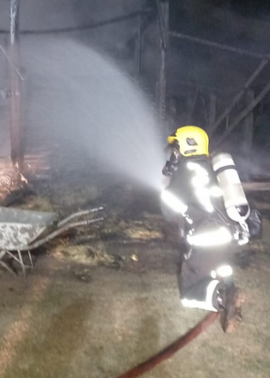 Segundo relato do proprietário, o incêndio teve início no teto da edificação, onde era armazenado o feno. O galpão, com área total de aproximadamente 150 metros quadrados, foi totalmente consumido pelas chamas.