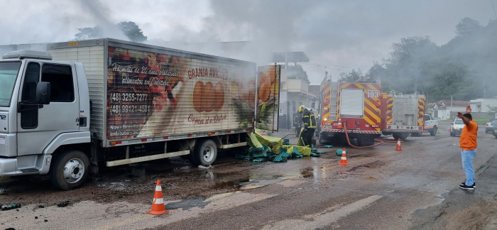 Na manhã deste dia 13, os bombeiros de Tubarão foram acionados para conter um incêndio em um caminhão baú, modelo Ford Cargo 715, que transportava bandejas de ovos. As equipes realizaram um combate agressivo às chamas, empregando 8 mil litros de água para controlar o fogo. Após o combate, todas as portas foram abertas para o rescaldo, resultando na retirada completa da carga.