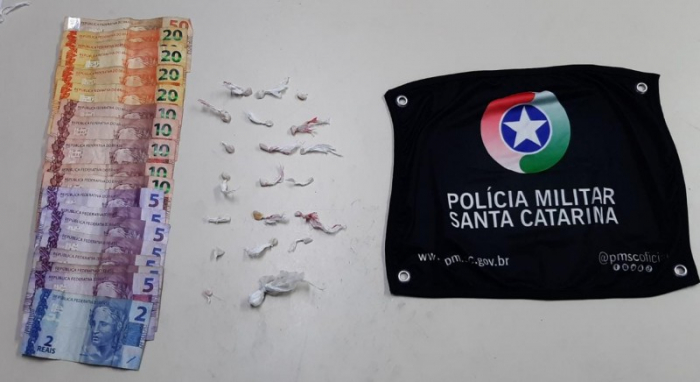 Um jovem foi preso por tráfico de drogas na noite dessa terça-feira, dia 30, por voltas 23h30, no bairro Renascer em Criciúma. O jovem carregava em seu bolso 19 invólucros plásticos com crack e um com cocaína, além de dinheiro.