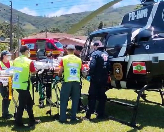 O jovem tinha suspeitas de traumatismo craniano, sangramento no ouvido, lesões nas pernas, lesões abdominais e suspeitas de fratura no fêmur esquerdo. Após receber atendimento inicial no local, ele foi transportado pelo helicóptero do Serviço Aeromédico ao Hospital Nossa Senhora da Conceição, em Tubarão.