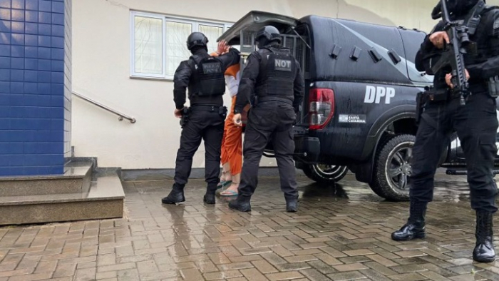 Com um esquema de segurança rigorosamente planejado, o acusado deixou o Complexo Prisional de Chapecó por volta das 6h30, sob vigilância do Deap (Departamento de Administração Prisional) e da Polícia Militar. Por volta das 8h, algemado e escoltado, ele adentrou o Fórum, onde será julgado.