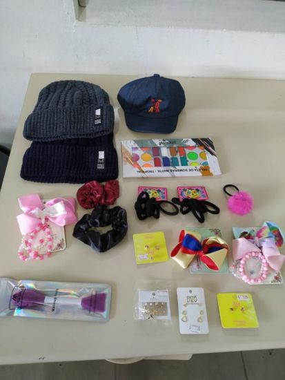 Na bolsa da suspeita estava diversos produtos do estabelecimento, 1 pincel de maquiagem, 1 jogo de maquiagem, 1 boné, 6 amarradores de cabelo e 2 toucas. Foto: PM A Polícia Militar de Tubarão foi acionada para averiguar possível furto em loja no centro da cidade. Chegando ao local uma funcionária da loja informou que uma cliente foi avistada colocando objetos a venda dentro de sua bolsa enquanto acreditava não estar sendo notada.