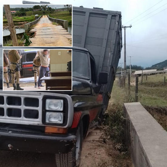 Uma tentativa de furto de gado em Grão-Pará, no Rio Pequeno, acabou em uma armadilha inesperada para os ladrões. Durante a madrugada deste domingo (11/06/23), seis novilhos foram furtados da propriedade de um vizinho. Os criminosos decidiram transportar o gado em uma caminhonete pela ponte, projetada apenas para carros pequenos, e acabaram caindo no local. A sorte não estava ao lado dos ladrões, pois um vizinho próximo da ponte avistou o acidente e chamou um caminhão Munck para prestar socorro.