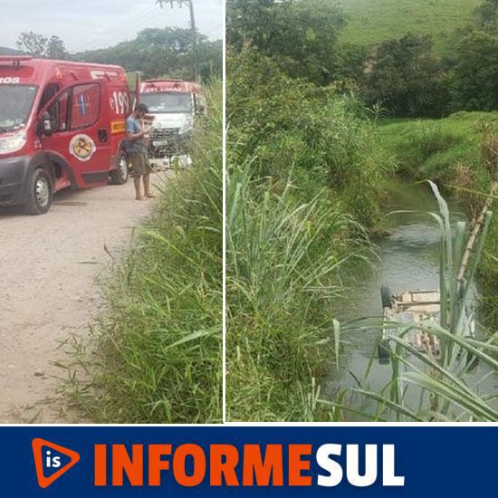 Acidente deixou veículo submerso e foi registrado no bairro Baú Central, em Ilhota.