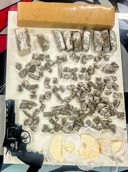 Segundo a PM, foram realizadas buscas na residência e em um dos cômodos, dentro de um guarda-roupas, foram encontrados 1.598,7 quilos de maconha, 198,7 gramas de crack e um simulacro de revólver. Um adolescente que estava na casa foi apreendido. Ele possui passagens por tráfico de drogas e receptação.