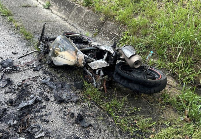 Após o impacto, a motocicleta chegou a pegar fogo, sendo necessário o trabalho dos bombeiros para controlar as chamas. A vítima recebeu atendimento no local e foi encaminhada ao Hospital de Imaruí.