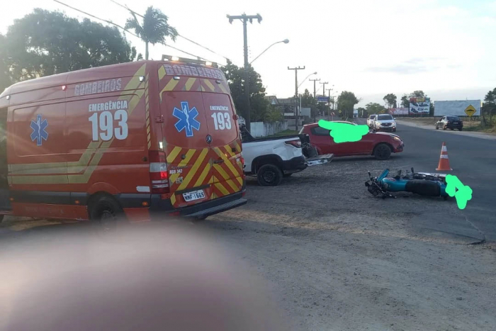 Na tarde desta sexta-feira (25), um motociclista de 19 anos sofreu ferimentos graves em um acidente envolvendo uma moto Honda CG e um Fiat Strada no bairro Vila Rica, no Morro da Fumaça. O acidente ocorreu por volta das 17h40, na rodovia Genésio Mazon, no distrito de Estação Cocal.