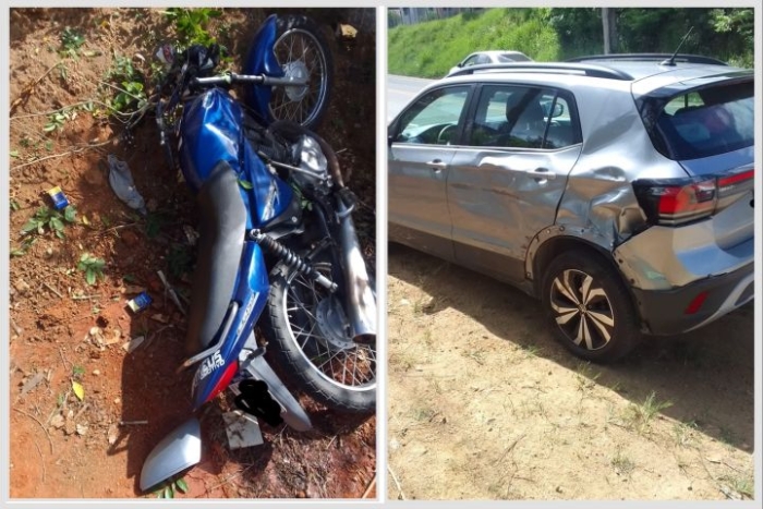 Um acidente de trânsito entre uma moto e um carro deixou um motociclista ferido na manhã deste sábado (8), na SC-437, no Centro de Imaruí.