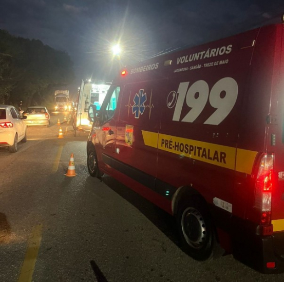 Segundo os Bombeiros Voluntários de Jaguaruna, após a colisão, a vítima estava caída em via pública, apresentando convulsão e sinais de Traumatismo Crânio Encefálico (TCE). Durante o atendimento pré-hospitalar, os socorristas imobilizaram o motociclista em uma maca rígida para encaminhá-lo ao Hospital de Caridade de Jaguaruna (HCJ).