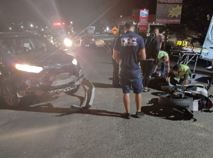 Uma colisão entre um carro e uma motocicleta deixou o motociclista ferido na noite dessa sexta-feira, dia 24, na SC-108, no bairro Corridas, em Orleans. O condutor do automóvel não se feriu.