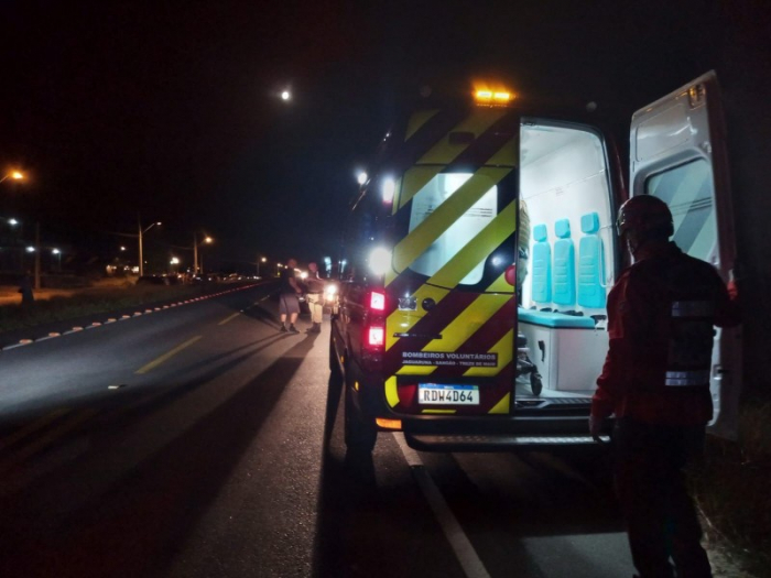 Mulher de 31 anos é socorrida após acidente na SC-100 e levada ao Hospital de Caridade de Jaguaruna