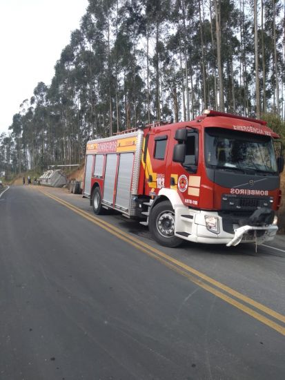 No local, se tratava de um tombamento de um caminhão Ford Cargo 2422 com placas de Morro Grande, que transportava ração. A vítima, um homem de 37 anos (condutor) encontrava-se embaixo do caminhão entre os eixos dianteiro e traseiro politraumatizado e foi encaminhado ao Hospital de Orleans.