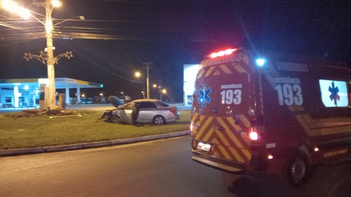 Perda de controle da direção resulta em colisão na rótula do anel de contorno viário