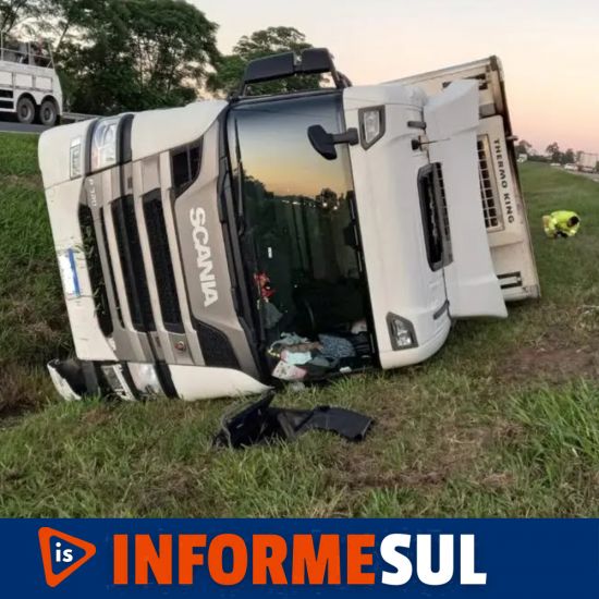 Conforme o Corpo de Bombeiros, o condutor do caminhão perdeu o controle da direção, saiu da pista e tombou no canteiro central da rodovia.O motorista foi projetado para fora da cabine do veículo, ficando embaixo do baú da carga.