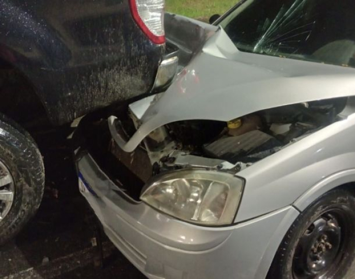 Um acidente de trânsito foi registrado na noite deste sábado (28), no Centro de Treze de Maio, envolvendo um automóvel e uma caminhonete estacionada.
