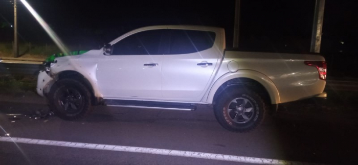 A pedestre foi atingida por uma camionete Mitsubishi Triton Sport com placas de Corupa.