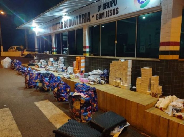 Os produtos tinham origem no Paraguai e seriam transportados ilegalmente, segundo a polícia. A abordagem, comandada pelo Tático Ostensivo Rodoviário e do Posto 9 da PMRv, de Bom Jesus, ocorreu na SC-155.