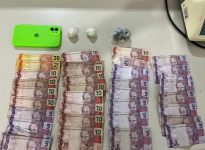 Na revista pessoal, foram encontrados R$295,00 em notas fracionadas, características do tráfico de drogas, e uma bucha de substância semelhante à maconha. Além disso, foram localizados dois pacotes nos fundos da residência, contendo pedras de substâncias semelhantes ao crack, já fracionadas para venda.
