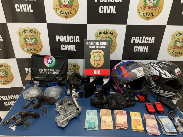 A Polícia Civil de Santa Catarina, através da Divisão de Investigação Criminal de Tubarão, vinha investigando um roubo ocorrido no dia 26 de abril de 2022, por volta das 22 horas, em um transportadora situada no bairro Vila Esperança. Durante o roubo os autores, empunhando armas de fogo, ameaçaram funcionários que ali estava e subtraíram um cofre, uma motocicleta e outros objetos. As investigações apontaram a identificação de pelo três indivíduos, os quais possuíam extensa ficha policial. Importante registrar a importante troca de informações entre a Polícia Civil e a Polícia Militar.