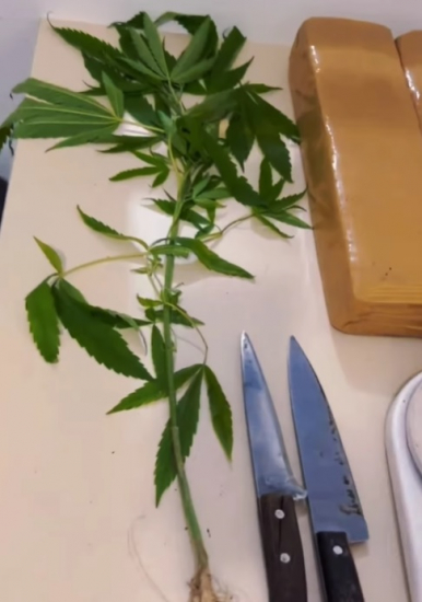 Ao chegarem à residência, os policiais notaram imediatamente um pé de maconha plantado em frente à casa. Observando pela janela, flagraram o suspeito fracionando maconha em cima da mesa da cozinha. Diante do flagrante, realizaram a abordagem e, durante a busca no interior da residência, encontraram 3,9 quilos de maconha, parte dela já fracionada e embalada em sacos plásticos transparentes, além de dois grandes tabletes embalados. Também foi localizada uma balança de precisão e duas facas com resquícios de maconha.