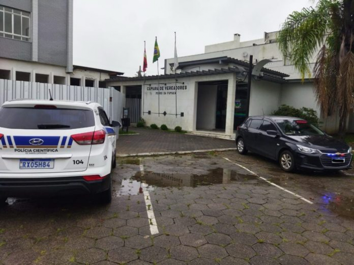 Foto TN Sul Uma operação policial está em andamento nesta manhã na Câmara de Vereadores de Morro da Fumaça. Mais de dez policiais civis e científicos estão presentes, coordenados pela 2ª Delegacia de Combate à Corrupção de Tubarão. Mandados de busca e apreensão estão sendo cumpridos na sede legislativa e em outros locais, todos sob segredo de Justiça.