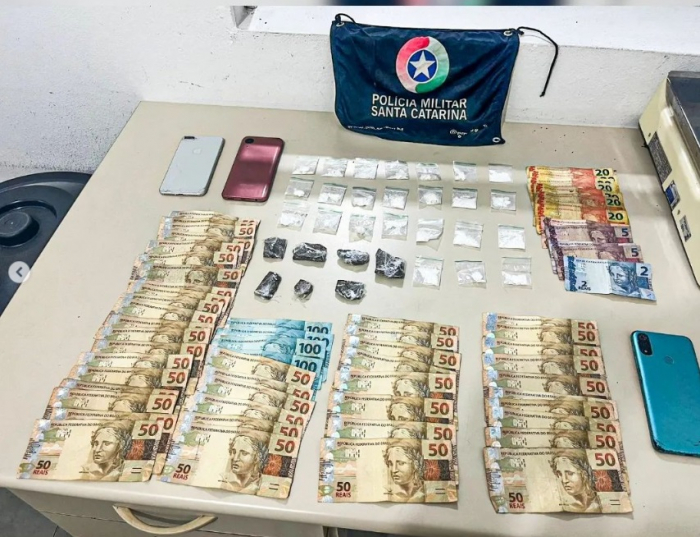 Durante a revista, foram encontradas com os abordados 25 gramas de cocaína, 34,1 gramas de maconha e a quantia de R$487,00 em dinheiro, configurando indícios de tráfico.