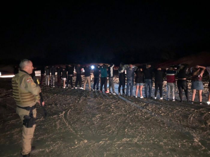 Veículos foram apreendidos e as pessoas que faziam as festinhas foram encaminhadas para a delegacia para responder um termo circunstanciado. Foto: PM Depois de receberem várias denúncias de perturbação de sossego de veranistas e moradores dos balneários de Jaguaruna, a polícia militar realizaou nessa madrugada a Operação Sossego.