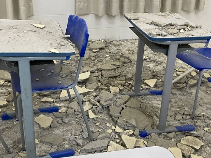 Segundo a Defesa Civil, acionada para verificar as condições da laje, não há riscos para a estrutura da escola, construída em 2015.
