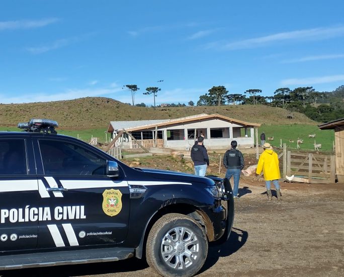 Após diligências e identificação do local onde o gado se encontrava, foi representado por mandado de busca e apreensão. Foto: PC Na manhã de hoje a Polícia Civil através da Delegacia de Braço do Norte com apoio da Delegacia de Rio Fortuna, cumpriu mandado de busca e apreensão e recuperou duas cabeças de gado em São Joaquim.